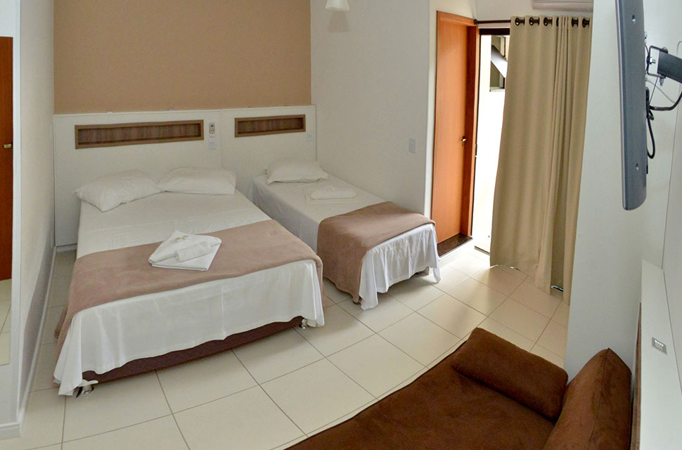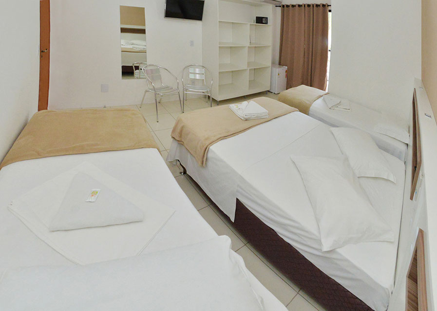 Em um total de 24 Quartos amplos e confortáveis, para casais e famílias de até 7 pessoas, Ar-Condicionado Split, TV com parabólica HD, Camas Box e Internet Wireless Grátis em todo o local. Todos nossos apartamentos possuem secador de cabelo e acesso exclusivo à cadeirantes.